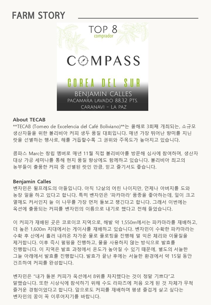 [생두] 볼리비아 아이마리타 파카마라 워시드
