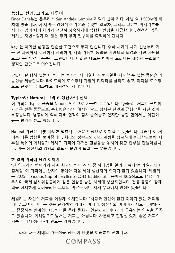 온두라스 산 안드레스 핀카 다리엘라 티피카 내추럴