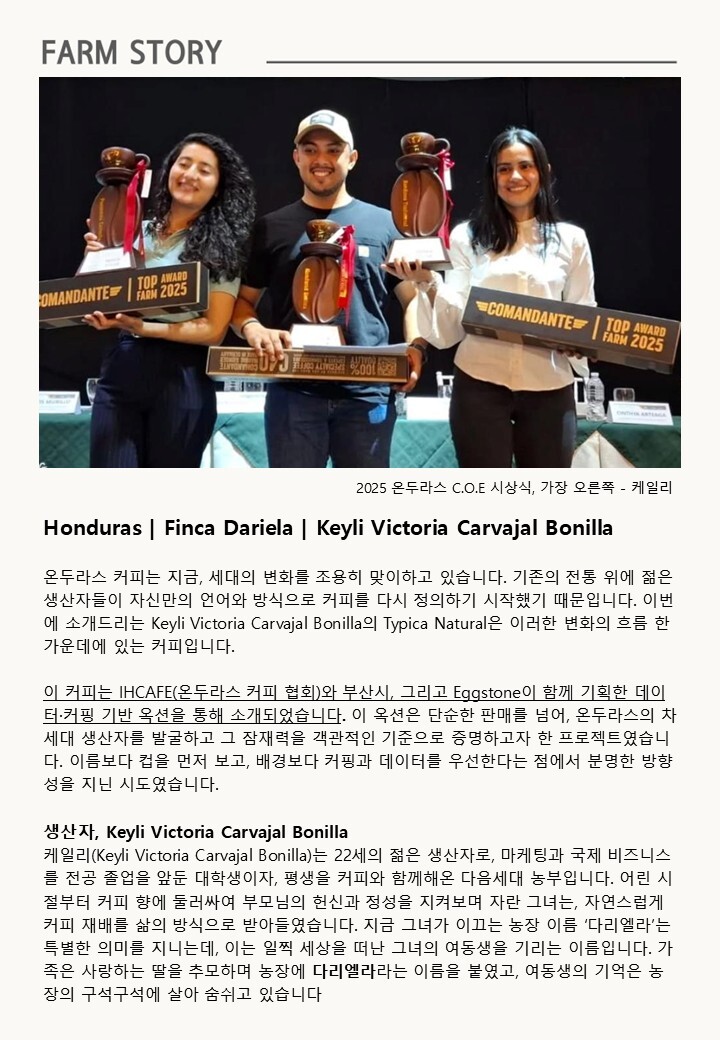 [생두] 온두라스 핀카 다리엘라 티피카 내추럴