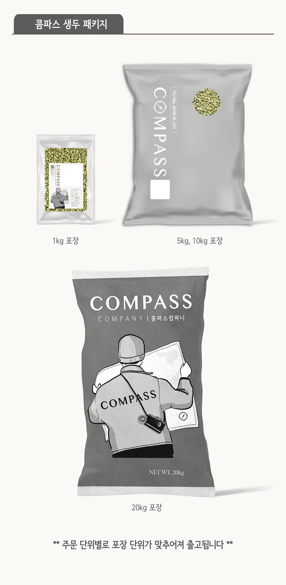* +500kg 이상 주문은 카카오 채널(콤파스 커피_생두) 또는 이메일(jae@compasscoffee.kr)로 문의주세요.