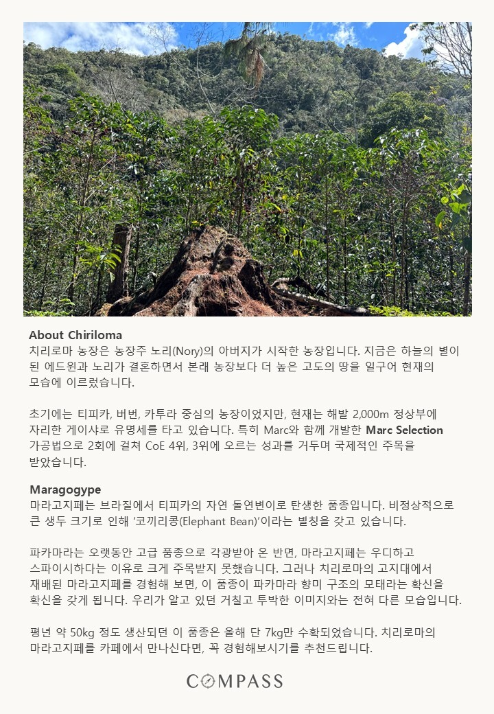 * +500kg 이상 주문은 카카오 채널(콤파스 커피_생두) 또는 이메일(jae@compasscoffee.kr)로 문의주세요.