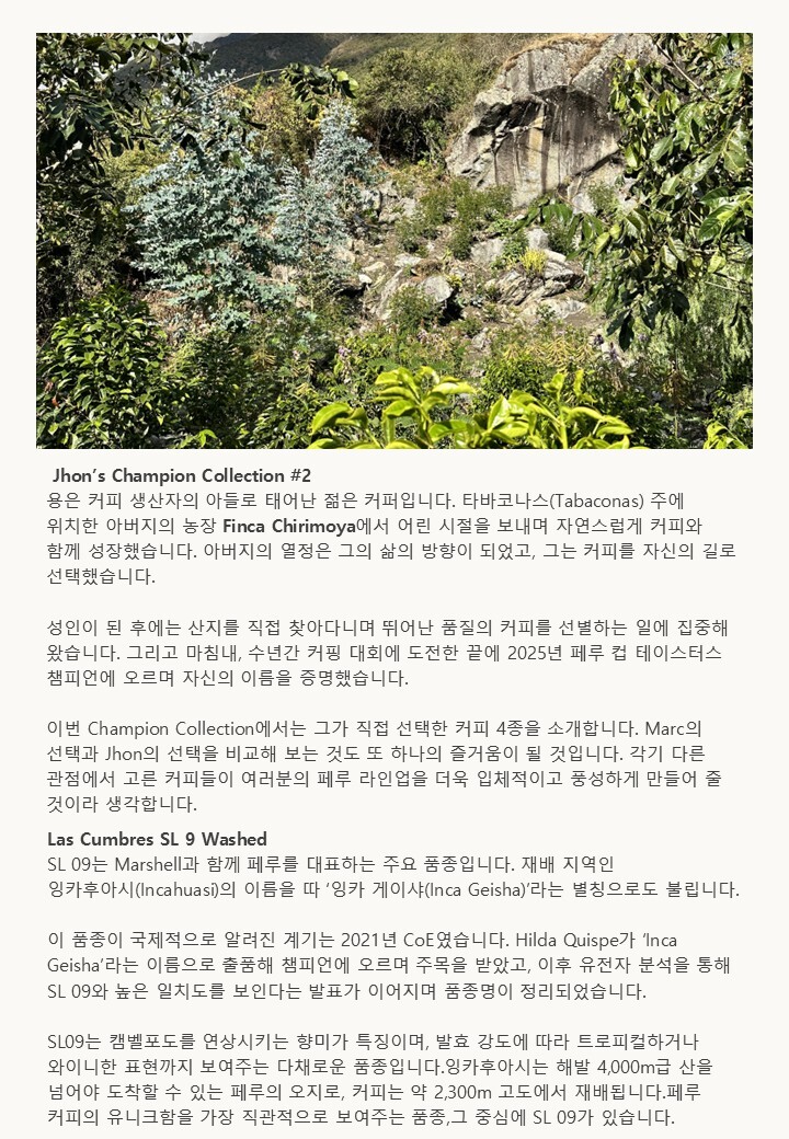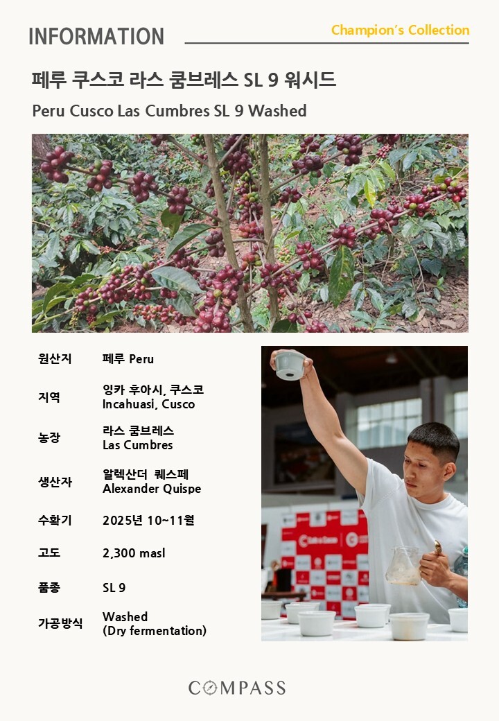 [생두] 페루 쿠스코 라스 쿰브레스 SL 9 워시드 챔피언 컬렉션