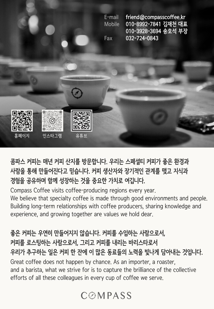 * +500kg 이상 주문은 카카오 채널(compasscoffee) 또는 이메일(jae@compasscoffee.kr)로 문의주세요.