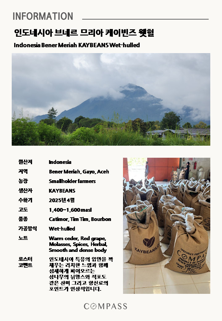 [원두] 인도네시아 브네르 므리아 케이빈즈 웻헐