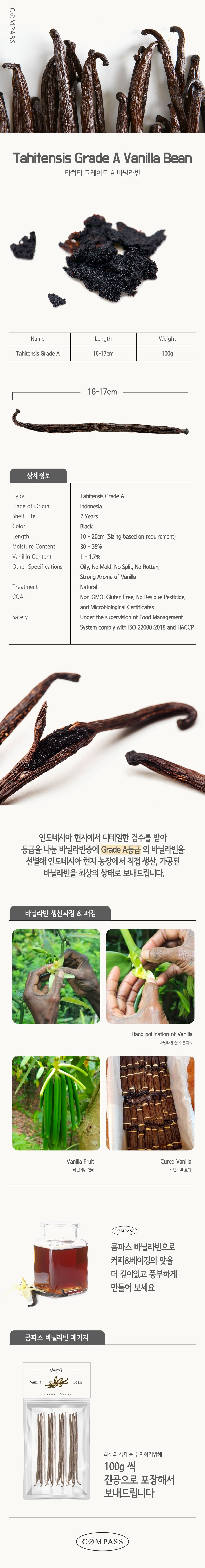 [바닐라빈] 인도네시아 타히티 Grade A 16-17cm 100g